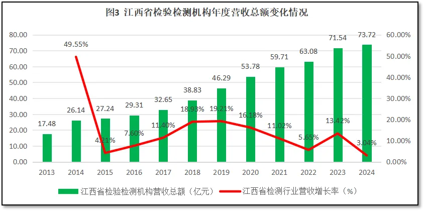 过去12年江西省检验检测机构年度营收总额的变化如图3所示。